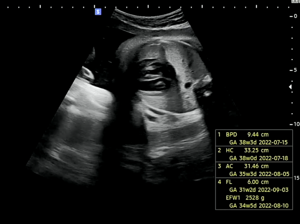 1. BPD, HC (태아 머리크기) = 38주차 3일 태아의 머리크기로 저번 진료대비 1주 더 빠르게 성장했다.