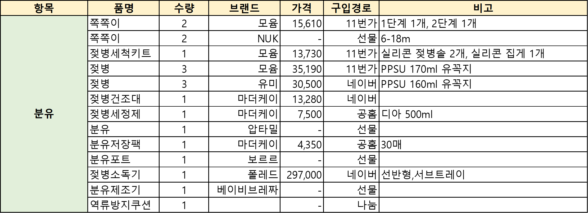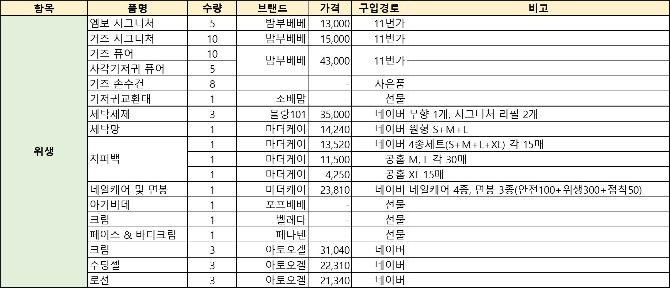 육아는 템빨이라고 했던가. 호띵이가 나오기 전에 호띵엄마가 열심히 준비한 출산 육아 용품리스트를 공유하겠다.