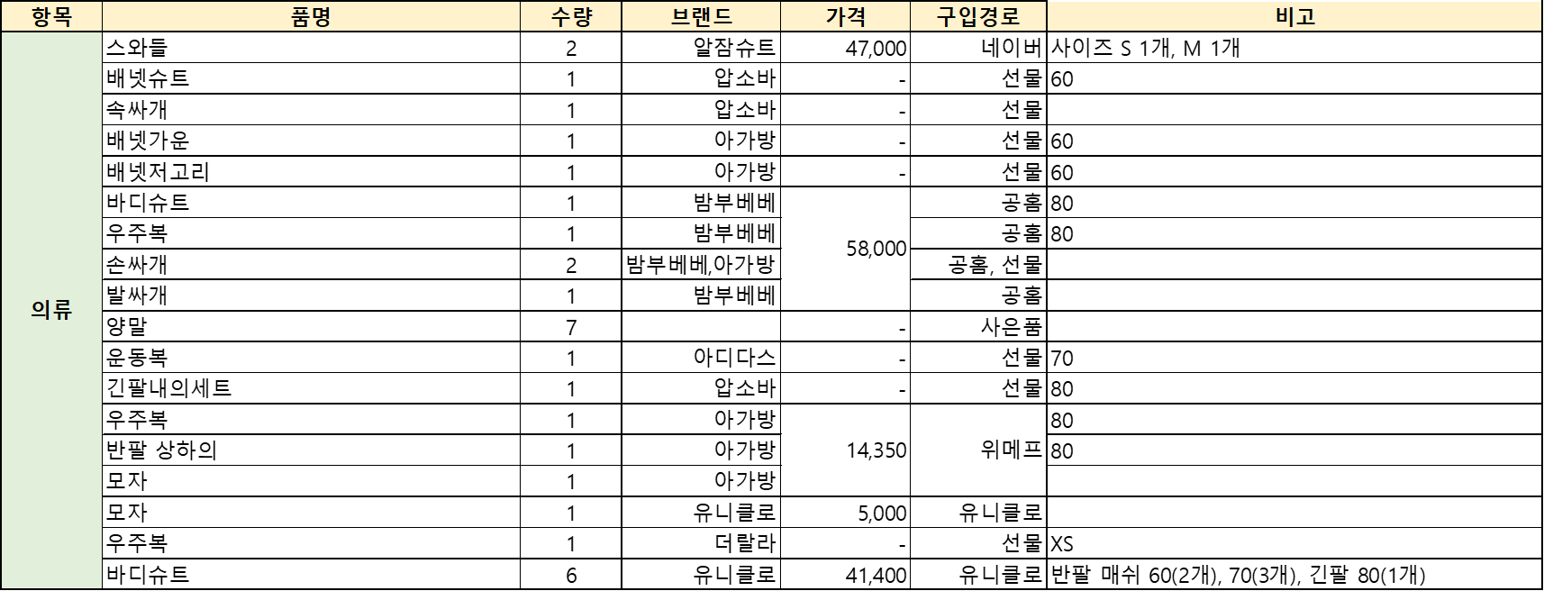 의류 (아기옷)