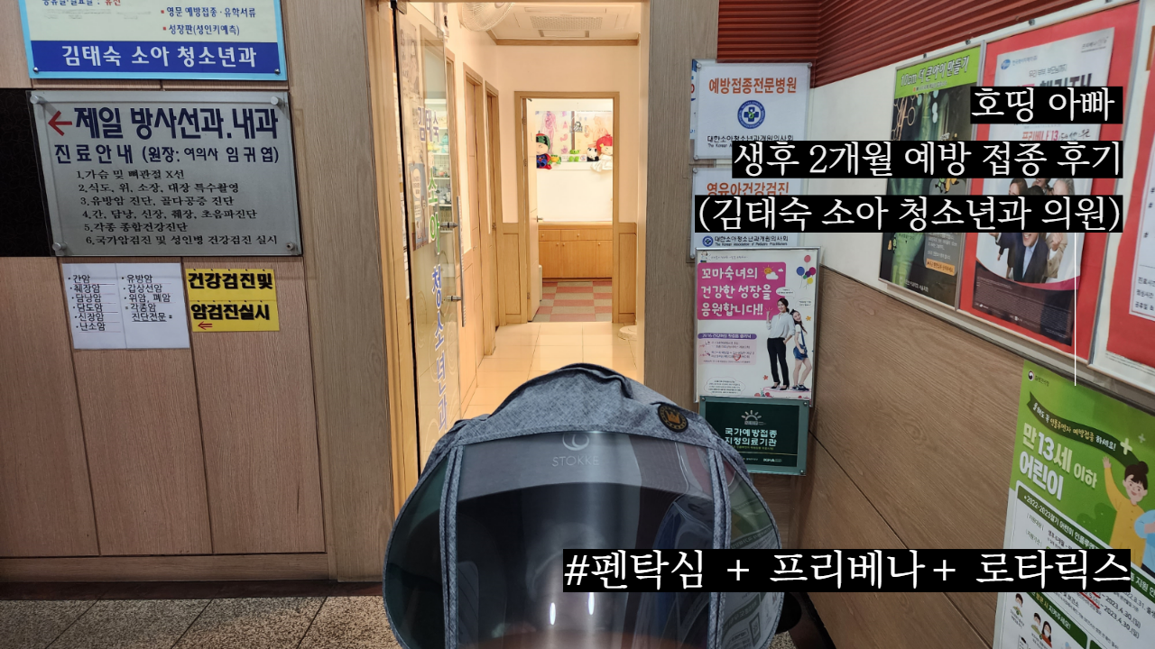 호띵이가 생후 2개월이 되었음에 따라 동네 소아과를 검색하여 생후 2개월 접종을 하러 갔다. 열이 나게 되면 위험할 수 있어 여는 시간에 맞춰 오픈런을 하였고 접종 하기로 한날에 맞춰 회사에 월차 신청을 마쳤다. 이번에 접종하는 것은 DTaP(디프테리아-파상풍-백일해),폐구균과 로타바이러스 감염을 피하기 위한 백신이다.