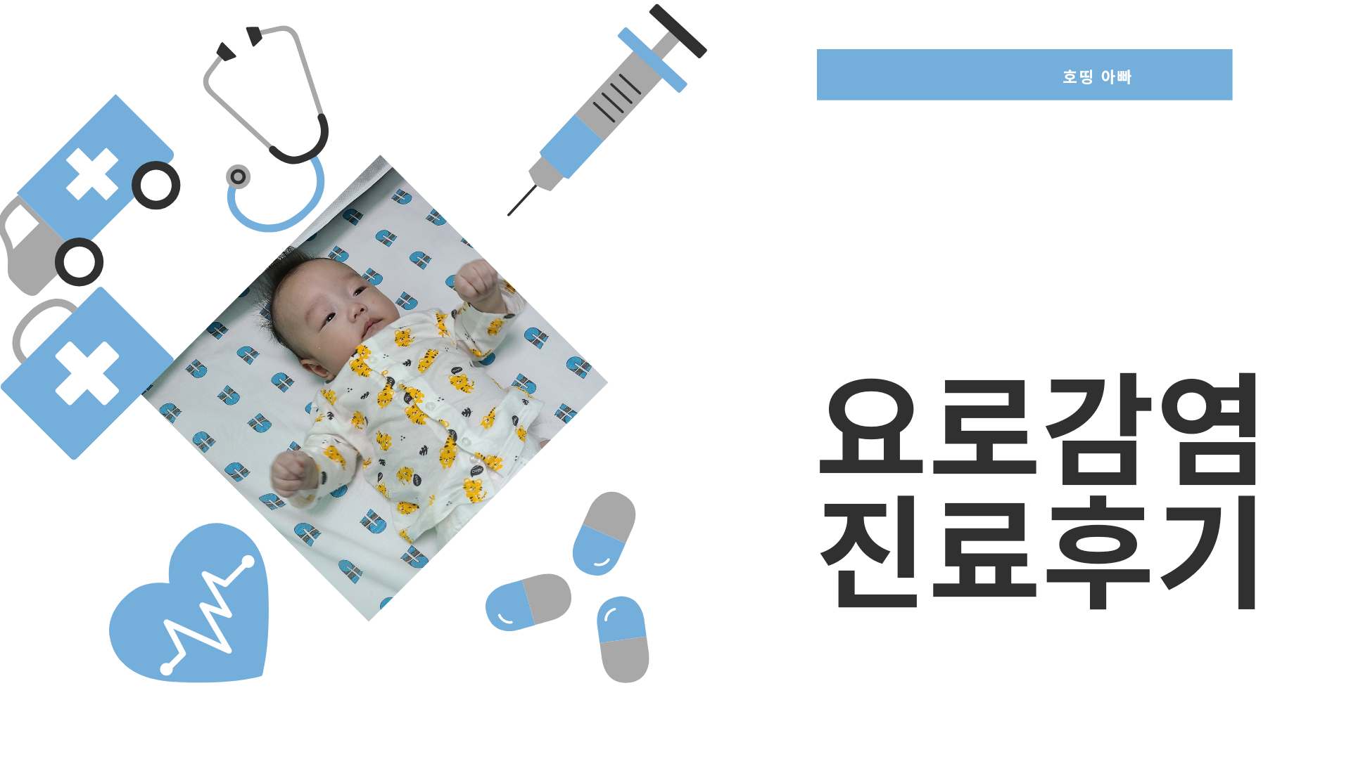 오픈 시간을 확인하고 호띵이 컨디션을 살핀 뒤 오전 중간 즈음 소아과로 갔다. 이 병원은 똑닥이라는 어플로 진료예약을 미리 할 수 있어서 우리도 미리 예약해놓고 시간에 겨우 맞춰 병원에 도착할 수 있었다. 의사 선생님이 진료할 때 시간이 그리 오래 걸리지는 않았는데, 요로감염의 경우 소변검사를 해야 하므로 소변 패치를 음경 부분에 붙이고 소변이 찰 때까지 기다려야 했다. 시간이 얼마나 걸릴지 몰라서 집으로 왔고 소변이 차기만을 기다렸다.