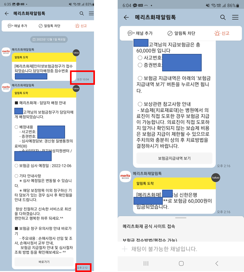 오전 10시에 신청을 했는데 당일 오후 2시 16분 진료비 제외한 나머지 금액 전체 보험금을 환급받을 수 있었다.