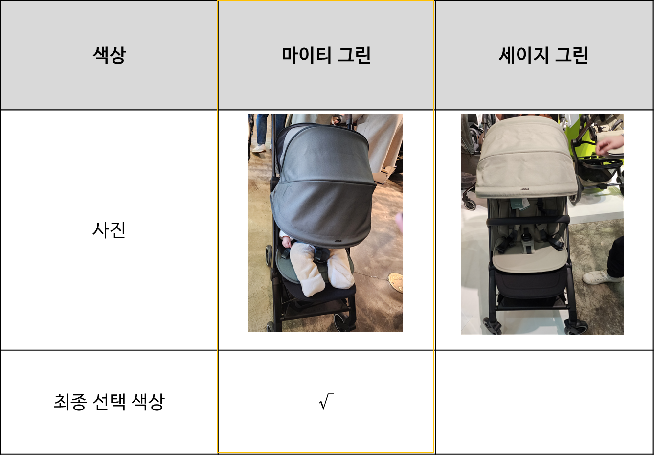 바꾼 이유 : 나중에 사용하면서 때 타는 것을 고려했을 때 마이티 그린이 더 적합할 것으로 판단.