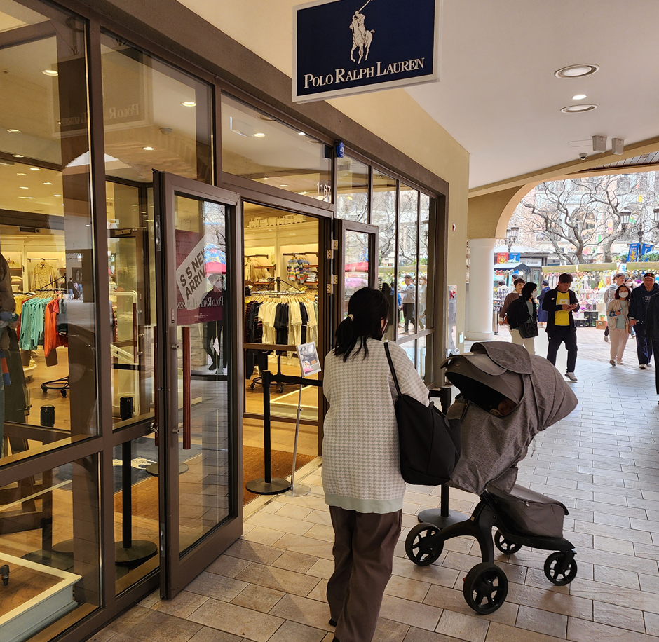 엄마/아빠도 함께 나오도록 사진도 찍고 호띵이 예쁘고 멋진 얼굴 잘 나오게 사진도 여러 장 찍었지만 아직 초상권 사용에 대해 수락받은 바 없기에 최대한 얼굴 안 나오게 찍은 독사진이다. 오픈하는 시간에 맞춰오다 보니 아직 거리에 사람이 그리 많지는 않았다. 그렇기에 사람이 많이 몰리는 폴로/점심을 먼저 먹고 나머지 쇼핑을 한 후 집으로 오는 계획을 세웠다.