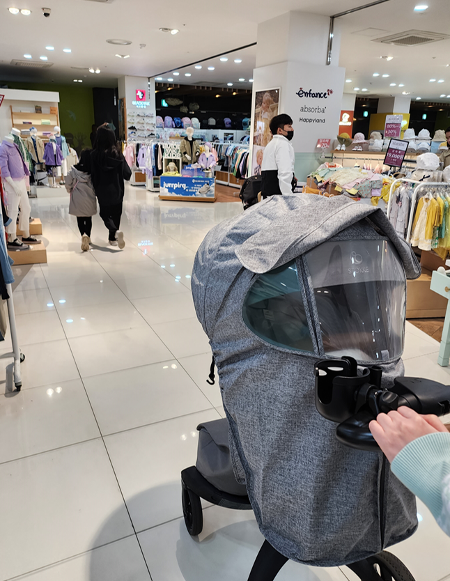 푸드 코트 바로 앞에 위치한 솔솔밥이 맛있다고 해서 꼬막솥밥/스테이크 솥밥 과 사이드 메뉴 유린기를 주문했다. 자리를 잘 잡으면 유모차도 옆에 놓고 밥을 먹을 수 있었고, 개장한 지 얼마 안 지나서인지 사람들이 들어오고 있을 때라 자리를 무난하게 잡을 수 있었다. 솥밥도 맛있었는데 유린기가 생각보다 깔끔하고 맛도 좋았다. 우리 부부 식사를 마치고 호띵이 밥을 먹이기 위해 수유실로 향하였다.