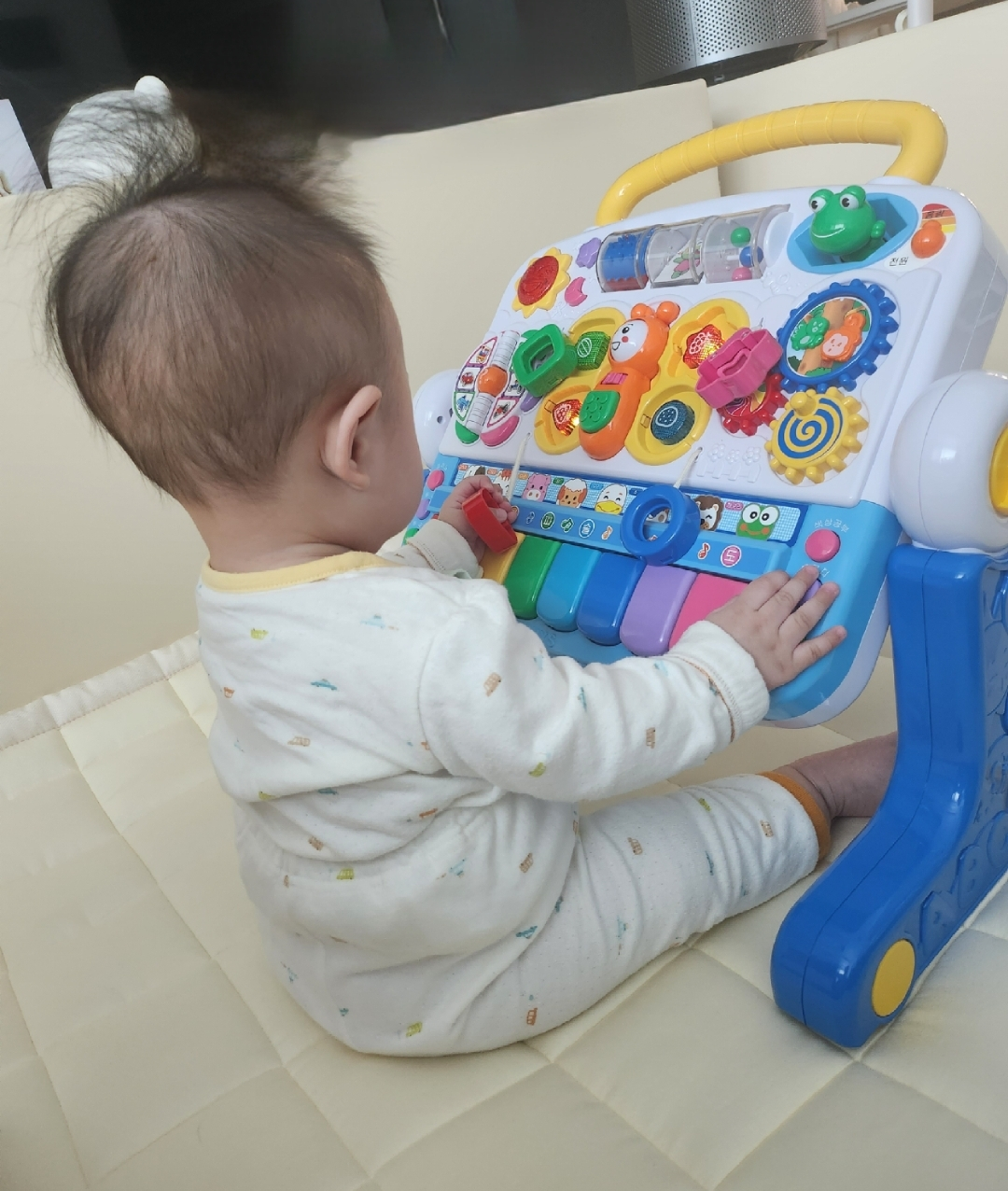 친구네 아기가 돌이 지났다고 하면서 물려받은 에듀테이블이다. 어떻게 활용할 수 있을지 고민하고 있었는데 앉을 수 있을 때 받은 장난감이라 2단계 놀이테이블 모드와 3단계 걸음마모드를 왔다 갔다 하면서 활용하고 있다.