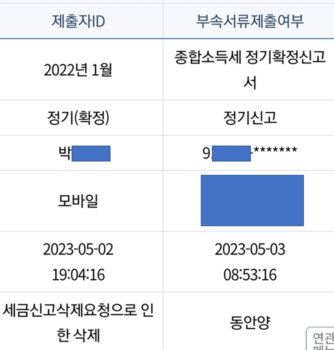 모바일로 종합소득세 신고 취소