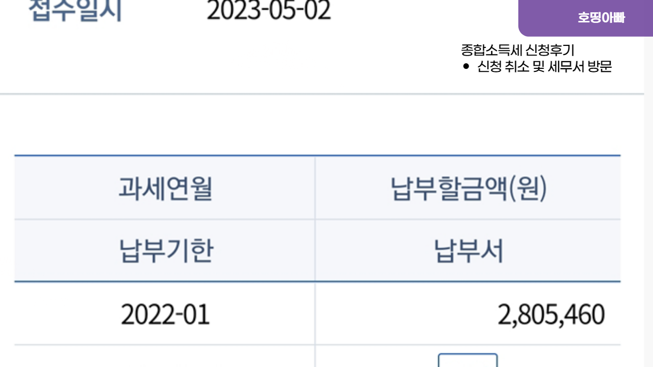 5월은 종합소득세 신고를 하는 달이다. 그리하여 회사를 다니고 있기 때문에 납부를 한다면 얼마나 하겠어? 하고 조회를 해봤는데 뭘 잘못 눌렀는지 납부해야 할 금액이 280만 원으로 확인되었다. 과다한 금액을 납부해야 한다고 생각하니 급한 마음에 신고 취소 및 삼쩜삼 그리고 세무서 방문까지 진행하여 최종 납부를 진행하게 되었다.