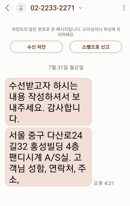 - 해당 지점에 문의하니 A/S 센터 연락처를 주었고, 전화 통화 후 A/S 접수에 대한 안내를 받게 되었다.