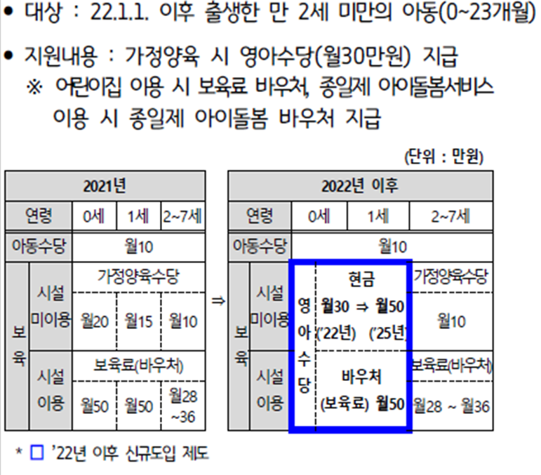 - 지원대상 : 출생신고되어 주민번호를 부여 받은 2022.1.1 이후 출생아