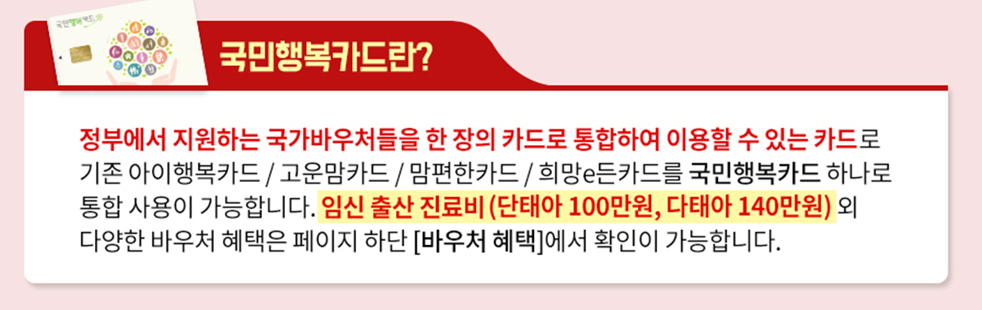 - 지원대상 : 임산부 등록이 완료된 임산부 (+배우자)
