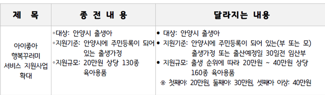 안양시 출생축하용품 지원사업 _아이좋아 행복꾸러미