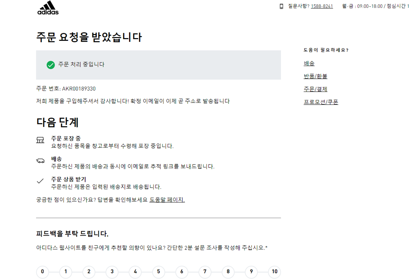 내것도 같이 사고싶어 사이즈를 추가해보았으나 1인1족 제한으로 인해 이번에는 호띵엄마 선물만 할 예정이다. 다만 결제는 완료 되었으나 주문창에 주문조회는 되지 않는 상황이라 지켜봐야할 것으로 예상된다. 결제가 완료된 것이면 주문조회 창에 바로 띄워주었으면 하는데 피드에 장바구니에는 아직 yeezy가 담겨있고 주문조회창에는 없는것으로 보아 전산처리가 오래걸리는 것으로 예상이된다.