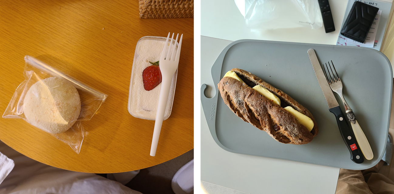 크림빵과 딸기 조각 케이크는 석식 후 방에 들어와 호띵엄마와 먹었고 호두 앙버터 브레드는 배가 불러서 집에 가지고 와서 먹었다. 하루 지나고 먹었는데도 맛은 괜찮았다.