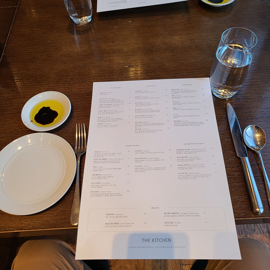 투숙객 할인 10%가 적용된다고 하여 외부에서 저녁을 먹지 않고 더키친을 예약하였다. 호띵엄마 컨디션이 좋아졌다 해도 임산부이기 때문에 이동량을 최소화하고자 호텔 내 식당을 예약하게 되었다.