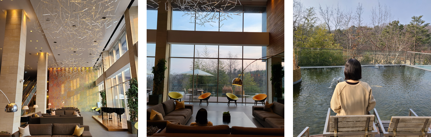 로비 천장에 있는 조형물이 멋지다. 로비에 있는 소파는 굉장히 편했고 로비 밖으로 나가면 물고기 밥을 주는 체험도 할 수 있다. (물고기 밥은 로비에서 무료로 제공 중이다.) 로비만 봤을 때는 5성급 호텔에 견줄만하였다.