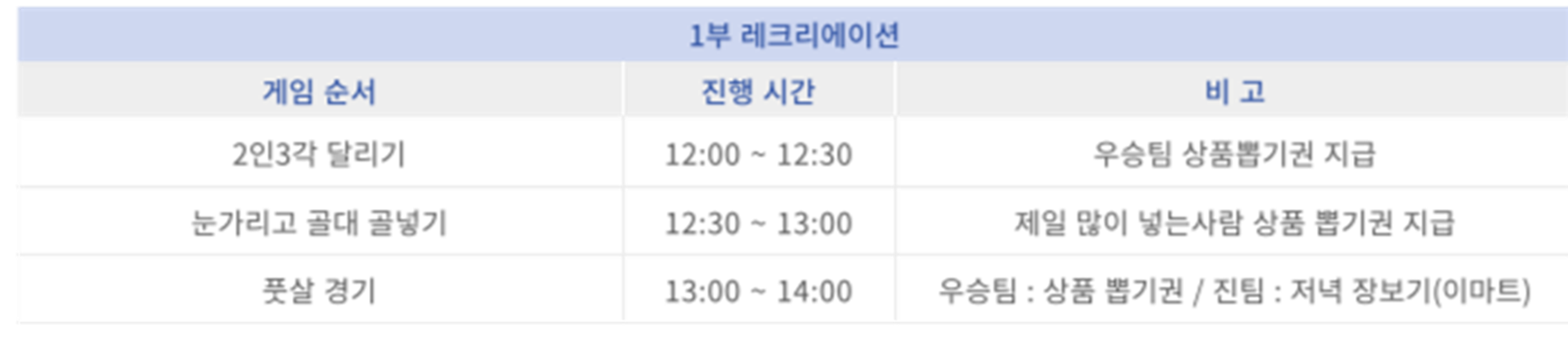 대충 위의 사진과 같은 느낌으로 진행되는데 협동심 향상 및 초반에 승부욕을 자극하기 좋을 듯하여 맨처음 순서로 2인3각 게임을 선정하였다.